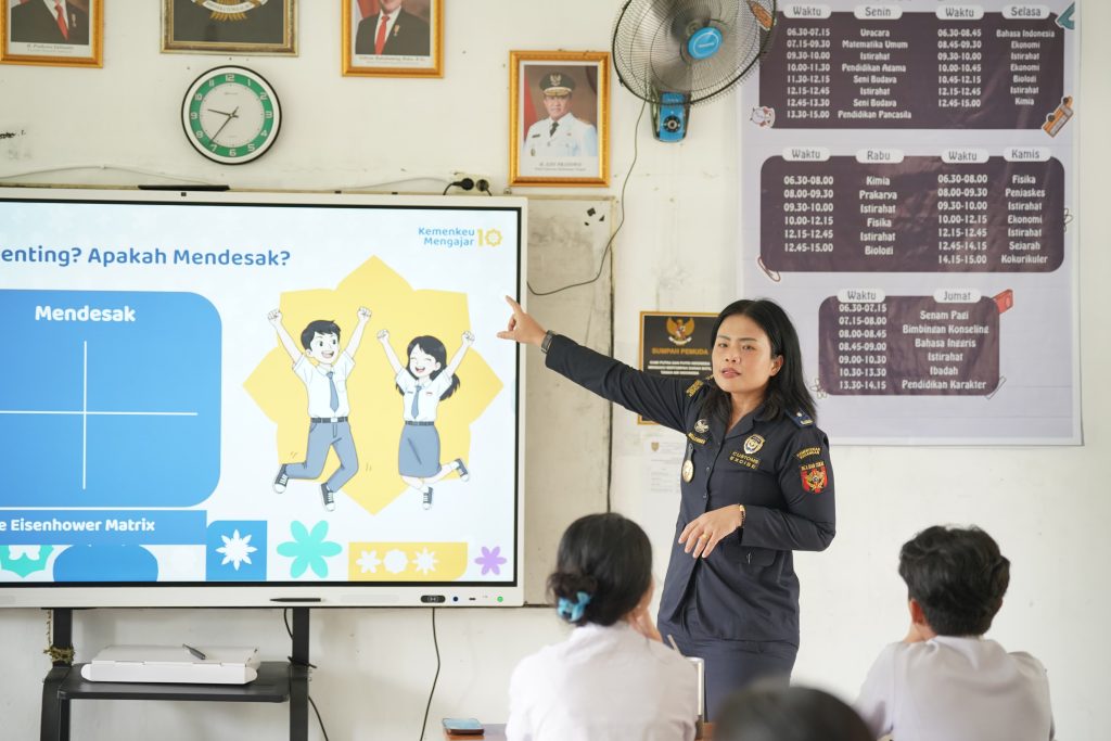Palangka Raya – Kementerian Keuangan bekerjasama dengan Dinas Pendidikan Provinsi Kalimantan Tengah melaksanakan kegiatan ‘Kemenkeu Mengajar 10’ yang digelar di SMA Negeri 4 Palangka Raya sehingga membuat para siswa siswi jadi melek pengelolaan anggaran pendapatan belanja daerah (APBD), bahkan mereka bisa turut serta dalam mengawasi penggunaan pengelolaan keuangan daerah.